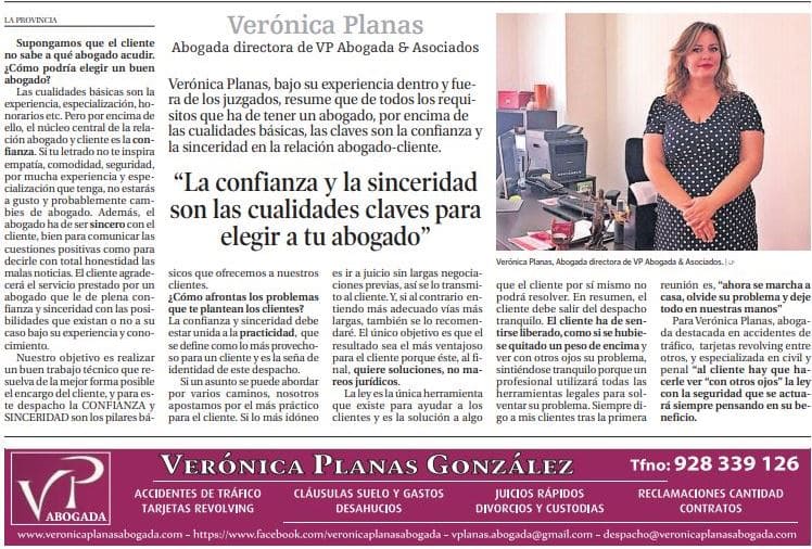 VERONICA PLANAS ABOGADA & ASOCIADOS tiene como principal objetivo proporcionar a sus clientes un asesoramiento legal adecuado, explicando y ofreciendo sus posibilidades de éxito de manera cercana. Nos caracterizamos por la seriedad, formalidad, profesionalidad, el trato directo y estrecho con el cliente y encontramos siempre la mejor solución al asunto porque su caso no es un caso más para nosotros, es SU caso.
